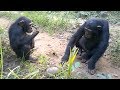 A group of chimps were left scratching their heads when meeting a tortoise for the very first time.